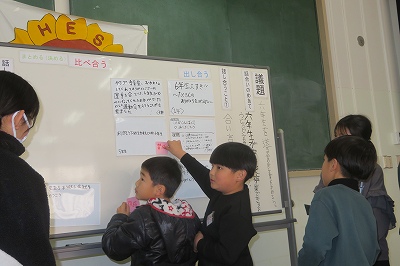 5年生まで発表したら、一番いいと思う合い言葉に、印を貼っていきます。
