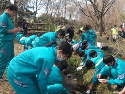 5校時に自転車で冷ヶ沼まで足を運び、ホタルの放流を行いました。本校は町内で唯一ホタルを飼育している中学校であり、20年余りの歴史を地域の方々と共に歩んできました。5月末から6月にかけて、ホタルが夜空に美しい光を放ってくれる日を、今から心待ちにしています。ほたるの会の皆様、交通誘導や駐車場整備をしてくださった。日産自動車大学校の職員の皆様ありがとうございました。