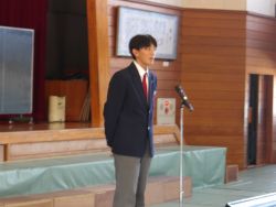 学級委員の皆さんは、これから約半年間、クラスのまとめ役として、また、クラスメイトの心の支えとなる重要な役割を担います。一人ひとりが責任感を持ち、温かい心でクラスを導いてくれることを期待しています。