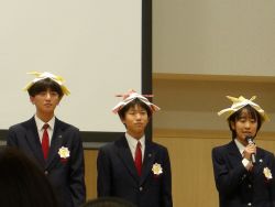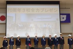 本校からは、3年生3名が代表として式典に参加し、「70周年3校全力プレゼン」のステージで見事な発表を披露してくれました。