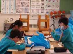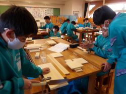 家庭科のトートバッグ作りや技術の木工制作では、工程の多くを生徒自身が判断して進めるスタイルを取り入れています。小学校での基礎を応用し、自ら考えて行動する「主体的な学び」を実践しています。一つひとつの作業に責任を持ち、自分だけの作品を作り上げる姿に成長が感じられます。