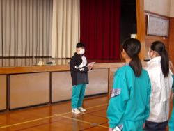 「歩み寄る心」: 周囲の仲間や家族と支え合い、相手の歩幅に寄り添う優しさを持つこと。 また、生徒指導主事からは、1,2年生へは進級の意識を持つこと、3年生は後輩に何が残せるのかについて話がありました。さらに、①いじめ・差別は絶対ダメ、今いる仲間を大切に!②思いやりを大切に。学校だけでなく地域でも「あなたの背中を見ている人がいること」③素直な心を持つこと等4月に生徒に伝えたことを再確認いたしました。