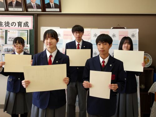 本日の昼休み、校長室は嬉しい笑顔でいっぱいになりました!頑張った成果を称え、表彰式を行いました。