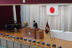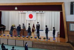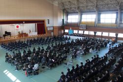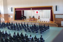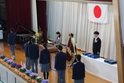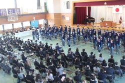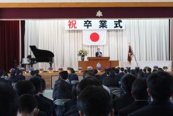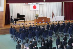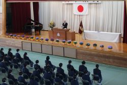 春風が吹く佳き日に本郷中学校第77回卒業式を挙行し、74名の生徒が学び舎を巣立っていきました。