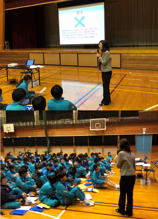 12月10日(火)5・6校時に1年・3年生を対象に血液検査の事後指導を行いました。普段の食生活の大切さを学びました。講師は上三川町で長年養護教諭として勤務された手塚光江先生です。