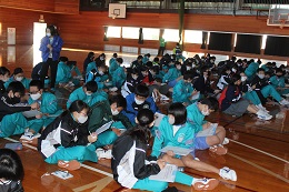 先週の木曜日の5,6時間目に、町子ども家庭課母子健康係の保健師の皆さんを講師にお迎えし、2年生対象【性と生き方学習会】を実施しました。学習会には、自分の長所や生まれてから今まで家族が自分のために配慮してくれたところ等を記入したワークシートを持ち寄って参加しました。まず、「男の子のイメージ」と「女の子のイメージ」について話し合い、グループに分かれて人生設計のプリントに自分の未来を想像しながら、進学、就職、結婚、出産等のライフイベントを書き込んでいきました。その後、人生設計に対する各人の考えや思いを発表し合い、共有化を図っていきました。途中、講師の先生から生き方についてのアドバイスや人生で困ったときにはどうしたらいいのか等についての興味深い話もありました。子供たちは一人一人、自分の未来について、目を輝かせて話していました。