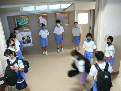 今日は、生活委員会の生徒たちが、朝のあいさつを強化して気持ちよく夏休みを迎えようということで、【あいさつ運動】を実施しました。生徒会役員の生徒たちは「アルミ缶回収週間」でしたので、参加できませんでしたが、朝から明るいあいさつが響き渡りました。私自身も、爽やかな気持ちで一日のスタートが切れました。ありがとう!!