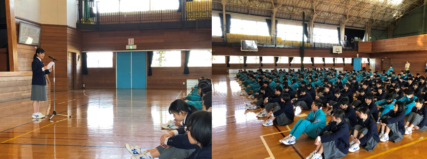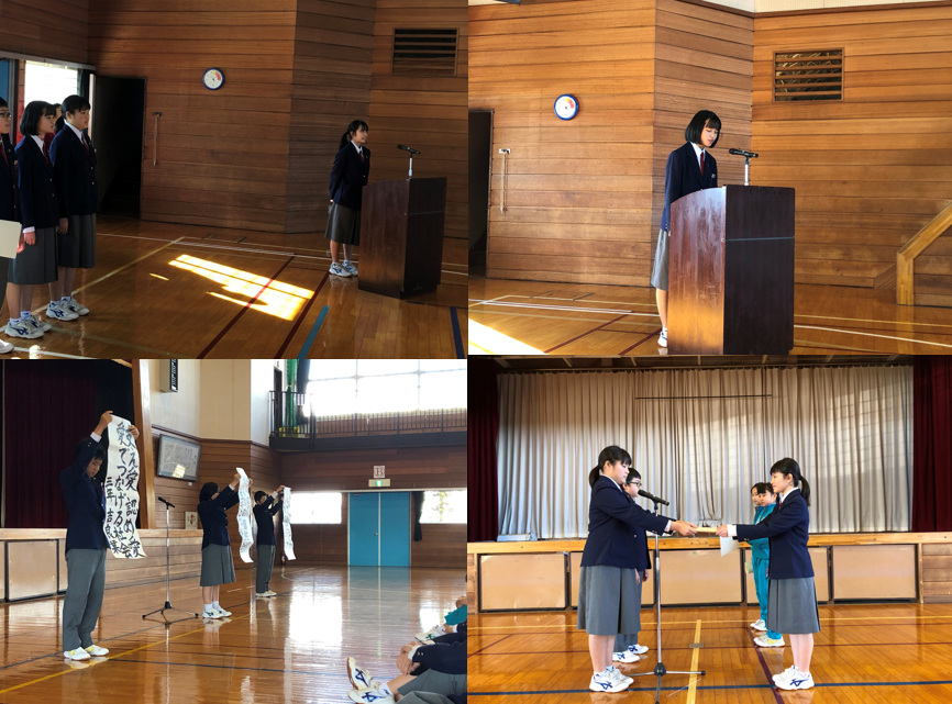 本日の昼休み、福祉人権委員会の集会がありました。標語の表彰や代表の作文発表がありました。