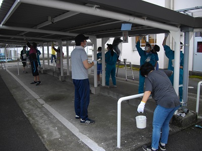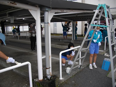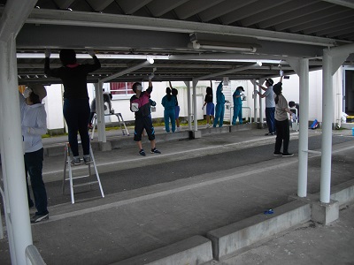 今日は、今年度第1回目の「学校支援ボランティア」が行われました。学校支援コーディネーターさんが中心になり、「できる人が、できるときに、できることを」をモットーに実施していますが、今回は約30名もの方々(地域の方、保護者、生徒等々)が参加してくださいました。今日は、駐輪場のペンキ塗りと桜の木の枝の剪定を行いましたが、とても綺麗な仕上がりで見違えるようになりました。ありがとうございました。次回は、7月4日(日)に実施する予定です。