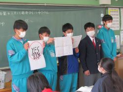 2年生の英語科の授業で表やグラフを使いながらプレゼンテーションを行いました。