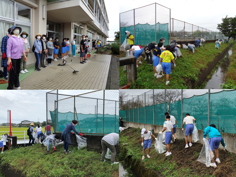 学校支援コーディネーター、地域連携教員によるボランティア活動のお知らせ(テニスコート東側・南側の除草作業)に多くの生徒、保護者、地域の方、学校支援コーディネーター、職員が集まりました。大型リヤカー2台分の除草ができました。本当にありがとうございました。