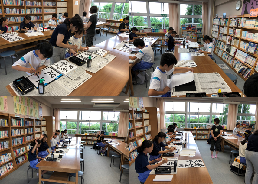 第1回夏休み書道教室を行いました。多くの生徒が参加しました。ボランティアの方も来ていただきました。ありがとうございます。