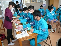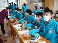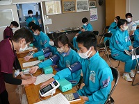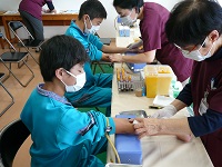 今日は、給食終了後、1年生と3年生が【小児生活習慣病予防健診】を受けました。この健診の目的は、①動脈硬化、高血圧、糖尿病の危険因子の早期発見及び予防 ②生活習慣病の早期発見及び現在の生活の見直しと健康づくりへの意欲付け です。今回の検査では、血圧測定と採血を行いました。私などは、毎年人間ドックでやっていますので、どうということはないのですが、中には採血中涙をためている生徒もちらほら・・・・・。でも、みんなよく頑張りました。