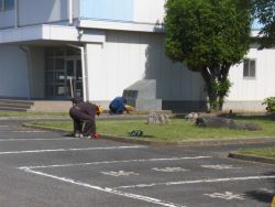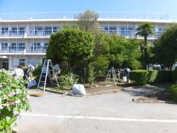 5月18日(土)8:00からPTA整備作業が約1時間程度行われました。今回は、プール周辺の除草と清掃、校舎前の樹木の剪定、体育館前の花壇の整備、正門前の植え込みの剪定などを中心に行いました。