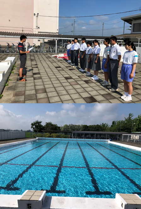 8時15分から各クラスの学級委員長を集め、プール開きを行いました。