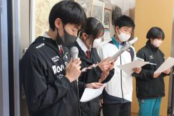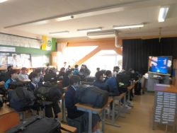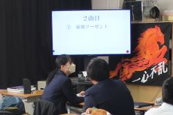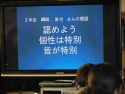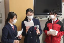 12月6日(水)に集会がありました。今回は放送常任委員会と福祉人権常任委員会の発表でした。放送常任委員会は、代表生徒が活動の報告とイントロ当てクイズを行いました。特にイントロ当てクイズは、選択肢に工夫をして回答者が戸惑うような仕掛けがありました。また、福祉人権常任委員会では、全員で分担をして発表を行いました。赤い羽募金や不要文房具の寄付について説明した後、人権に関する標語について、代表作品の紹介がありました。