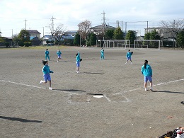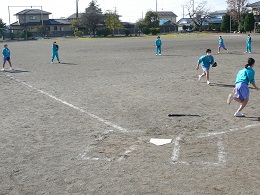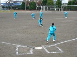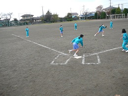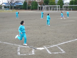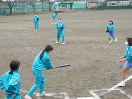 現在、保健体育科の授業では、1年生から3年生の女子がソフトボールに取り組んでいます。ソフトボールは、ベースボール型の教材ですから、バットやグローブなど他のスポーツにはない用具操作が必要で、それらを用いて「打つ」「投げる」「捕る」「走る」といった多くの技能が要求されます。そして、なんといってもワンプレーごとの「アウト」「セーフ」が醍醐味でしょう。また、技能が向上するにつれて、攻守ともに作戦が多くあり、状況に応じて作戦を立て、より高度なゲームを楽しむことが可能になります。ゲームを見せていただいて、ボールの転がり方やスピードを判断しその変化に対応できる身体的能力や空間感覚の向上、コミュニケーション能力や協調性の育成等、様々な教育的効果を生む可能性のある教材だなと感じました。