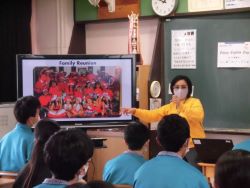 今回は、クリスマスも近いこともあってフィリピンのクリスマスの様子についてパワーポイントを使用しながら説明をいただきました。フィリピンの学校には「クリスマスデイ」があり、クリスマスイベントを行うそうです。生徒からは、「本郷中でもやってほしいな」という声も上がっていました。
