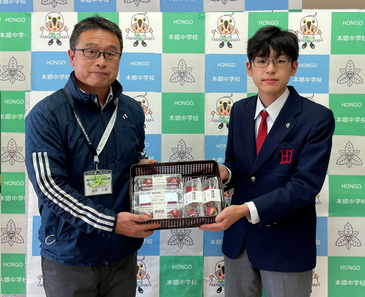 上三川町4Hクラブ様から卒業生にイチゴのプレゼントがありました。