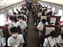 無事に高崎駅に到着しました。いよいよ学校までのバスに乗ります。表情から充実感がうかがえます。