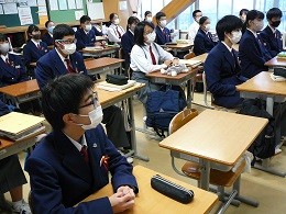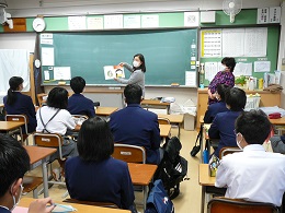 12月6日(月) 先週、2年生は、各クラスで朝の読書の時間にブックトークを行いました。ブックトークとは、特定のテーマに関する一連の本を、エピソードや主な登場人物、著作者の紹介、あらすじも含めて、批評や解説を加えながら一つの流れができるように順序よく紹介したものです。今回のテーマは、『福祉』です。様々な視点から福祉を捉えた本を紹介していただきました。また、12月1日(水)は、5校時終了後、オンラインによる表彰集会を行いました。
