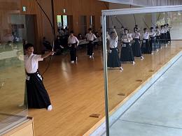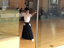 昨日、ユウケイ武道館(県総合運動公園内で、以前プールがあったところに建てられた近代的な武道場)内にある弓道場で【宇河地区新人弓道大会】が行われました。本校に弓道部はありませんので、校外で弓道を習っている生徒が出場しました。前半は、緊張からか的を外すことがあったのですが、後半は本領発揮、最後までよく頑張りました。お疲れ様でした。私自身、弓道の大会を観戦するのが初めてでしたので、自分自身も経験者で弓道をよく知っている先生に、いろいろとお話をうかがいました。弓道は、精神の集中が要求されるため、単なるスポーツとしてだけでなく、心身の鍛錬という側面も持ち合わせているそうです。ライフルのように照準器はありません。矢の行き先は、自分自身の精神状態に大きく左右されます。従って、どんな状況でも平常心を保つ精神的な強さが求められるそうです。