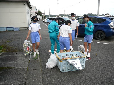 今週は、生徒会主催の【アルミ缶回収強化ウイーク】です。今日も、朝早くから生徒会役員が、アルミ缶回収協力のお願いをしていました。ありがとうございます。「ちりも積もれば山となる」の言葉のように、1個でも2個でも結構です。ご協力よろしくお願いします。