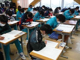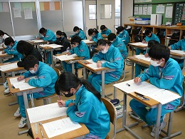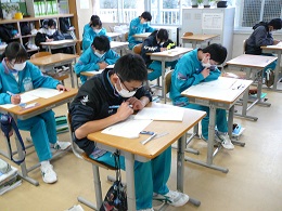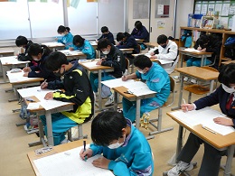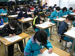 さて、県内の私立高校入試も始まり、いよいよ受験勉強もラストスパート、3年生にとっては勝負の2ヶ月になります。3年生はもちろんですが、1年生、2年生も、今やるべき事を自覚し、しっかりと地に足をつけ、一人一人の夢に向かって進んでいく1年であって欲しいと思います。今年も、全教職員が子供たちと一緒に本校の学校教育目標である