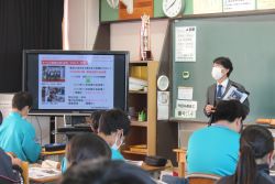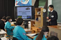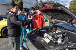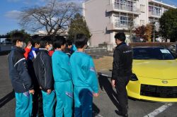皆さん、日産栃木自動車大学校をご存じですか。本郷中学校区の「上郷」にある専門学校です。12月14日(木)5校時に2年生で日産栃木自動車大学校 中村校長先生及び日産自動車販売店の職員の方々をお招きして、職業人講話「自動車の安全・安心・快適を育てる仕事」~自動車整備士・カーエンジニア~及び車両体験等を行いました。