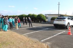 体育館前の駐車場では、車外からの操作で車を前後に動かすことができ