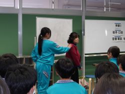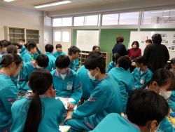 12月16日(火)、2年生が総合的な学習の時間に聴覚障がい者に関する講話を行いました。 日常生活や大切にされている思いを直接伺い、接し方や手話を教わるなかで、生徒たちは真剣にメモを取っていました。障がいのある方の生活を知るだけでなく、今の福祉制度についても学び、自分たちに何ができるかを考える貴重な時間となりました。