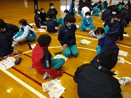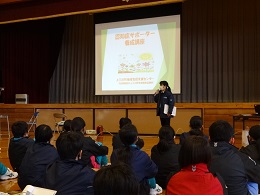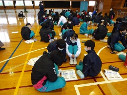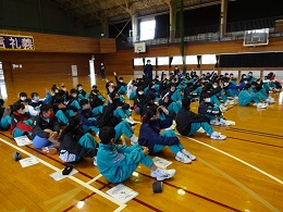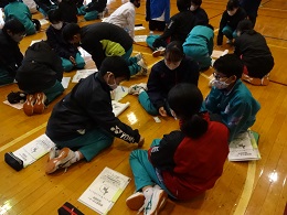 昨日、上三川町地域包括支援センターの方々を講師として、本校体育館で行われた【認知症サポーター養成講座】に1年生が参加しました。講座では、認知症の具体的な症状や予防の仕方について学んだり、認知症の人たちにはどのように接したらよいのかをグループで話し合ったりしました。高齢のおじいさんやおばあさんと一緒に住んでいたり、おじいさんやおばあさんが近くに住んでいたりする子供たちも多く、身近なこととして考え、興味をもって活動に参加していました。