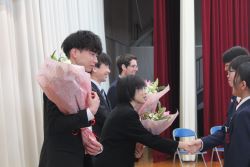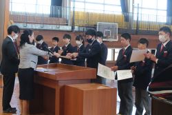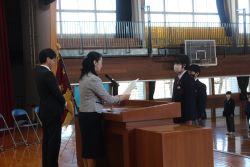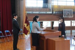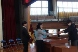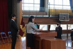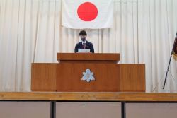 修了式では、修了証書を各クラスの代表に授与した後、1年生と2年生の代表生徒による今年度の総括と来年度に向けての抱負について発表がありました。二人とも、自分自身が成長した点や反省すべき点について冷静に見つめて、来年度目指すべき姿を具体的にしっかりと発表してくれました。素晴らしい発表内容でした。ありがとうございました。