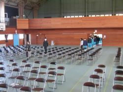 卒業式事前準備(2年)と卒業式の練習(3年)