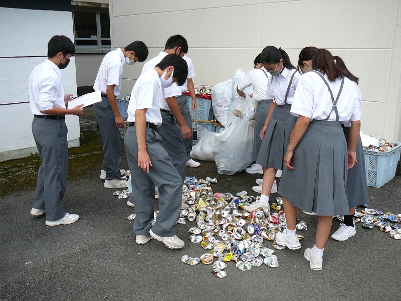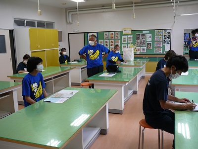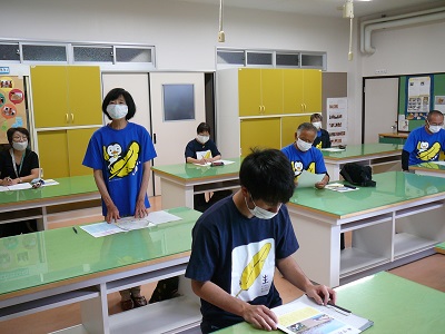今日は、本郷地区にお住まいの保護司の方々と更生保護女性会の方々が来校し、あいさつ運動を実施しました。本校の子供たちと顔見知りの方も多く、あいさつはもちろんですが、子供たちとの会話もはずんでいたようです。その後、十分に間隔をとり、窓を全開にした「三密」を避けた被服室で、意見交換を実施しました。保護司の代表の方と更生保護女性会の代表の方から犯罪の発生状況等の説明があった後、私から本校の学校経営についての説明と本校生の現状について、大型テレビを使って写真等もお見せしながら話をさせていただきました。ある保護司の方が「今日昇降口前で実施していた生徒会の生徒によるアルミ缶回収もそうだが、自分たちで考え、主体的に行動している様々な活動に感心した」とおっしゃっていました。