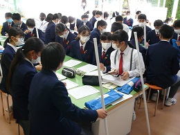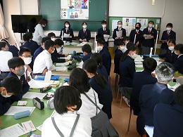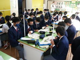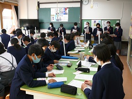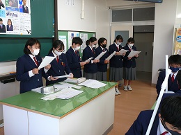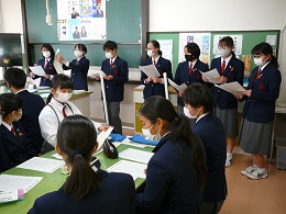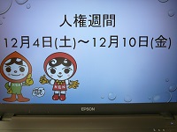 昨日、5時間目終了後、オンラインによる「福祉人権常任委員会集会」が行われました。今回は、福祉人権常任委員会の生徒が作成した動画を各教室で視聴する形で集会を実施しました。「赤い羽根募金」「オレンジリボン」について説明があった後、本校の今年の人権標語優秀作品の発表がありました。様々な視点から真剣に人権について考えている姿勢に感心させられました。最後に、「世界人権宣言」「人権週間」について説明がありました。今後も、人権意識向上のために継続した活動をよろしくお願いします。集会の後、生徒会役員選挙に関わる「立候補者」「責任者」「運動員」等を家庭科室に集め、選挙管理委員会による「生徒会役員選挙説明会」が行われました。説明会では、選挙管理委員の生徒から「心構え」「選挙運動に関わるポスターや道具」「校内演説のやり方」「選挙公報の書き方」「応援放送」「意見発表会」等について説明がありました。意見発表会及び投票は、12月10日(金)に行われます。皆さん、頑張ってください!!