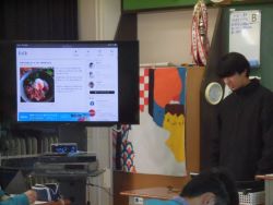 数年前までは、模造紙や画用紙にまとめていた発表も、今ではタブレットやパソコンを使って、簡単に発表できるようになりました。背景や画像などを工夫して分かりやすく発表しています。