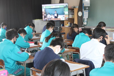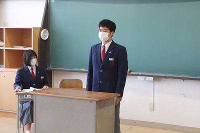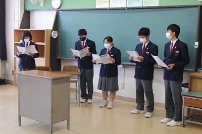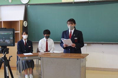 令和3年度「生徒総会」が、本日リモートで開催されました。生徒会は、生徒による自治的な組織です。生徒会は、学校生活を送る上での問題点や課題などを改善・解決することを目的に組織されています。生徒会活動を通して、望ましい人間関係を形成し、集団や社会の一員としてよりよい学校生活づくりに参画し、協力して諸問題を解決しようとする自主的、実践的な態度を育てていくわけですが、その最高審議機関が「生徒総会」です。今日は、昨年度の活動報告・決算報告、今年度の活動計画・予算案等の審議の他に、学級目標の発表、部活動の活動目標の発表、常任委員会の活動目標の発表等が行われました。どの生徒も、自信をもって発表・発言を行っていて、大変質の高い「生徒総会」であったと思います。遅くまで残って準備やリハーサルを行っていた生徒会役員の皆さん、お疲れさまでした。