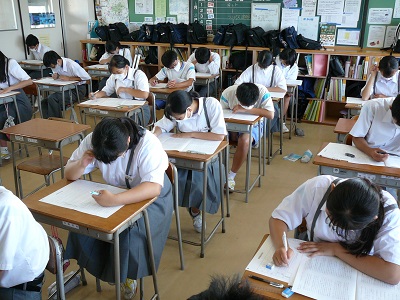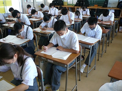 今日は、朝、修学旅行の荷物の搬出がありました。その後3年生は、修学旅行前の最大の関門である【第2回実力テスト】に挑みました。どの生徒も真剣そのもの、受験生の気迫を感じました。