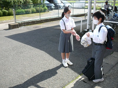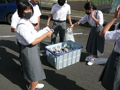 本校の生徒会では、資源の有効利用や地球環境保全のために、私たちに何ができるかを考え、全校生徒に「アルミ缶回収」を呼びかけています。中学生になると、自転車通学なので、アルミ缶を持ってくるのも大変ですが、中には一人で50個以上も持ってきてくれた生徒もいました。ありがとうございます。ちなみに、回収されたアルミ缶から再生地金をつくるエネルギーは、原料のボーキサイトから新しい地金をつくる時のエネルギーのたった3%ですむそうです。なんと97%ものエネルギーが節約できるわけです。