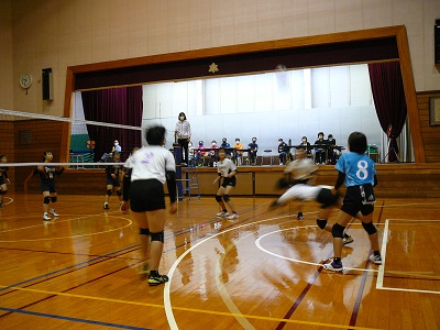 バレーボールの新人大会は、本校体育館を会場に行われています。新型コロナウイルス感染症の予防対策のため、プレー中大きな声は出せませんが、一人一人の気迫が伝わってくる素晴らしい試合でした。