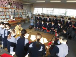 11月24日(金) 3年生が、2,3校時の総合的な学習で茶道体験を行いました。 ねらいは、日本文化である茶道について、基本的な内容を確認し伝統文化を学ぶことです。茶道には、日本のいろいろな伝統文化が集結しています。茶室に生けられた花、掛け軸に書かれた禅語、茶碗などの工芸品など幅広い分野と関わりがあるのです。今日の体験を通して、おもてなしの心、相手を思う心、美しい所作など何か1つでも感じてもらえたら嬉しく思います。 |