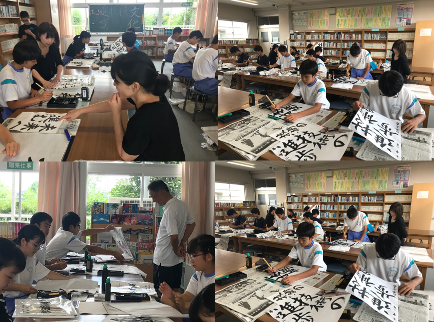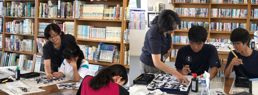 第1回14名、第2回16名と多くの生徒が参加しました。ボランティアの皆様も来ていただきありがとうございました。北條先生、伊澤先生も下野書道大賞を取られたこともあり、熱心に指導していました。