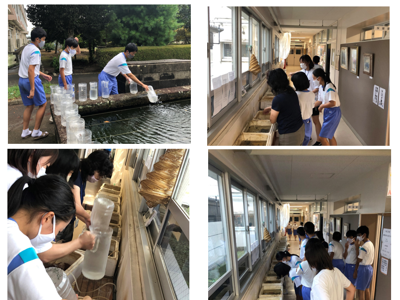 今年度のホタルの幼虫は、驚くほど順調です。1つの水槽に20近くの大きな幼虫が育っています。ホタル会のメンバーも毎週水曜日に水交換を行い一生懸命育てています。