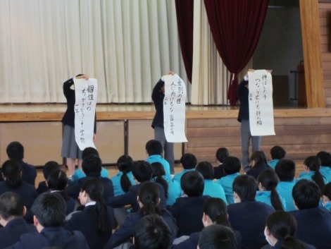12月6日(水)、生徒会の福祉人権常任委員会による集会がありました。各学年の人権標語の紹介や人権作文の朗読等が行われました。