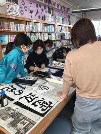 学校支援コーディネーターの方々の声かけで、今年も「冬休み書道教室」を開くことができました。当日は、書き初めの用紙を持って多くの子供たちが集まりました。また、ボランティアとして、5名の保護者の方も参加してくださいました。お忙しい中、ありがとうございました。