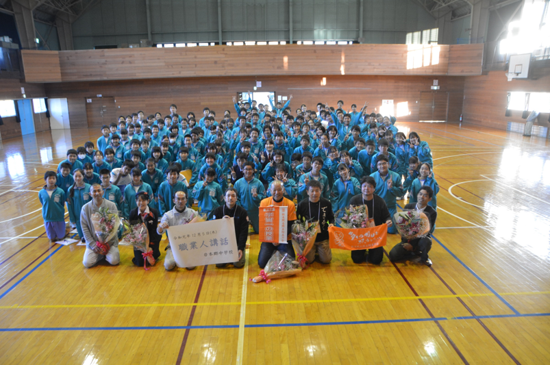 12月5日(木)5校時・6校時目に職業人講話を実施しました。社会で頑張ってる大人の話を聞きました。教室では学べない、大切なものを学ぶことができたと思います。