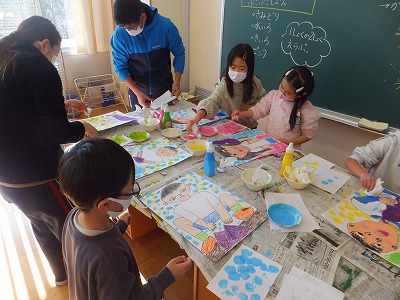 芋掘りの絵を完成させました。