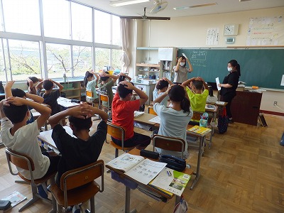 大きな声は出せません。ALTの声よく聞いて、反応しています。