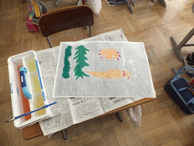宝は、子供たちが折った折り紙です。教室のいろいろなところに隠しました。